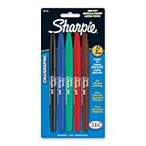 Sharpie® Calligraphic Marker Pen Set, Black/Blue/Brown/Green/Red Ink, Medium Point, 5/Pk